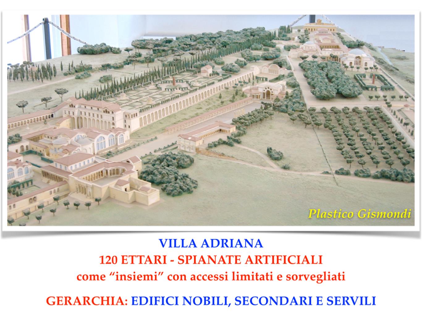 La Villa Adriana di Tivoli (vicino Roma) è la più grande villa dell’antichità romana. I simboli del Potere sono rimasti gli stessi per millenni: uno di questi è l'architettura delle residenze imperiali romane, di cui Villa Adriana è l'esempio più importante. Il Potere è simboleggiato dalla grandiosità dell'architettura, dalle innovazioni tecniche come le cupole "a ombrello", dalla scelta sapiente dei materiali da costruzione, e dalla rete di tunnel sotterranei destinati agli schiavi. Altri simboli del Potere sono il lusso della decorazione, la disponibilità illimitata di acqua, gli edifici termali, i percorsi per passeggiare al riparo d'inverno o al fresco in estate. L’architettura straordinaria ed eclettica di Villa Adriana era un simbolo del potere assoluto dell'imperatore Adriano. Fu l’erede dell'architettura del Potere dei dinasti ellenistici, per poi diventare archetipo e fonte di ispirazione dei grandi palazzi e ville rinascimentali e barocchi.