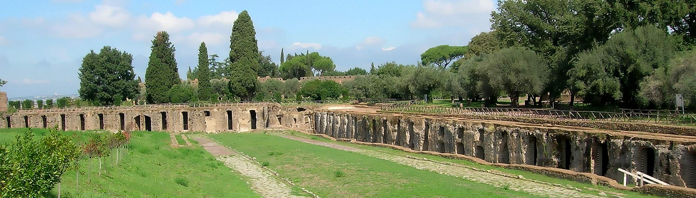 Davanti alle Cento Camerelle passa una strada carrabile, messa in luce in occasione del Giubileo del 2000; corre parallela al grande Anello basolato che raggiungeva il Vestibolo ed era uno degli accessi monumentali della Villa.