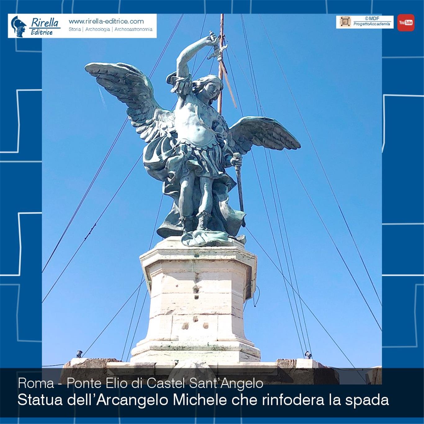 Papa Gregorio guardò al cielo e in cima al Castello gli apparve l’Arcangelo Michele che ripuliva la sua spada dal sangue e la riponeva nel fodero, segno che pestilenza era finita.