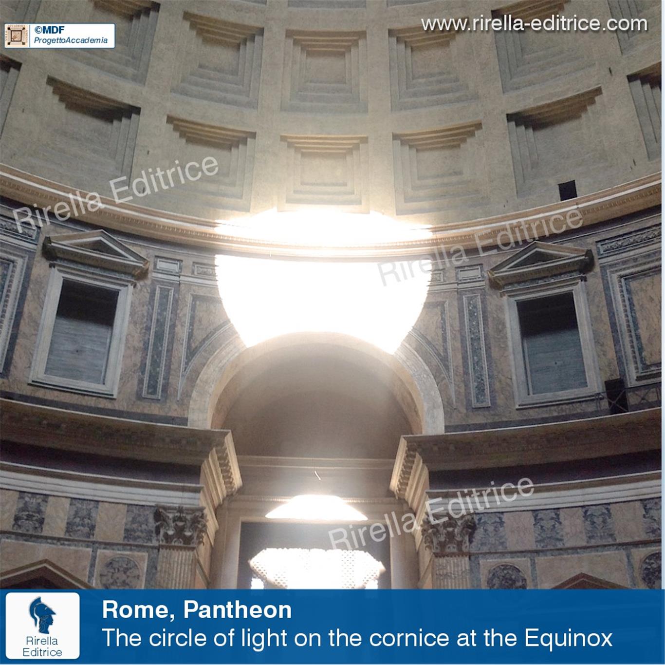 He also discovered that the Pantheon functioned as a sort of seasonal sundial: «It is possible to determine the dates of the year by observing the position of the spot of light at astronomical noon [...] If it is winter, the oval of light never falls below the lintel; if it is summer it descends until it illuminates the floor of the temple».