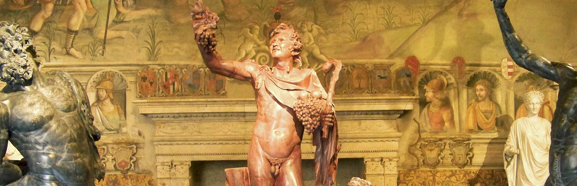 ✅ The bunch of grapes obviously alludes to wine and therefore to Dionysus, and in fact the Faun was part of the Dionysian procession like the two Centaurs. A sculpture of Child Dionysus was also found in the Accademia.