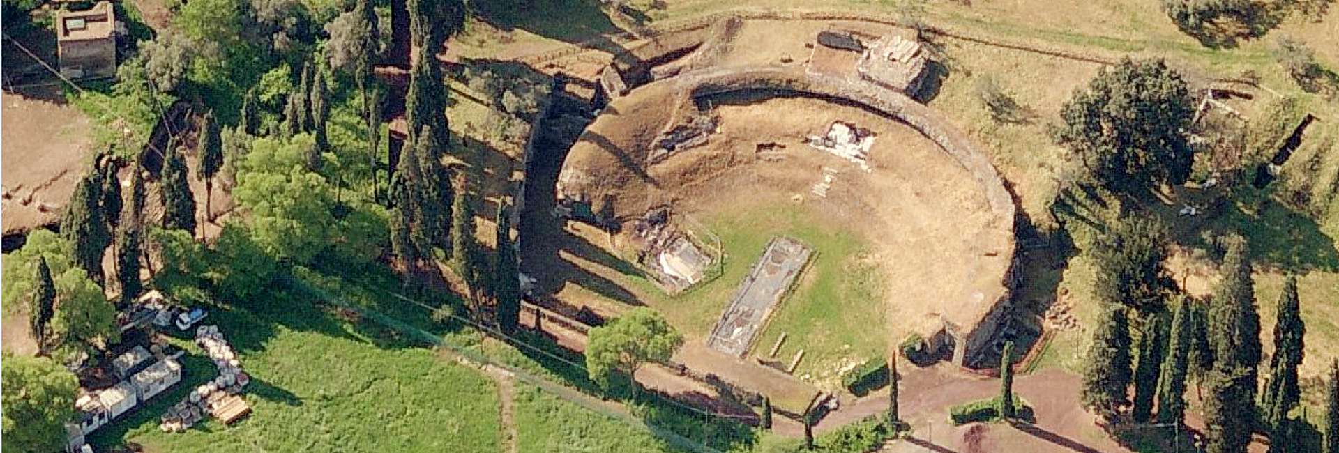 The Greek Theater is near the entrance to Villa Adriana but little is left since for centuries it was a comfortable quarry of building materials. The inhabitants of Tivoli took advantage of it and the marbles disappeared. Recent excavations by the Pablo Olavide University of Seville (Spain) have brought to light many previously unknown structures.