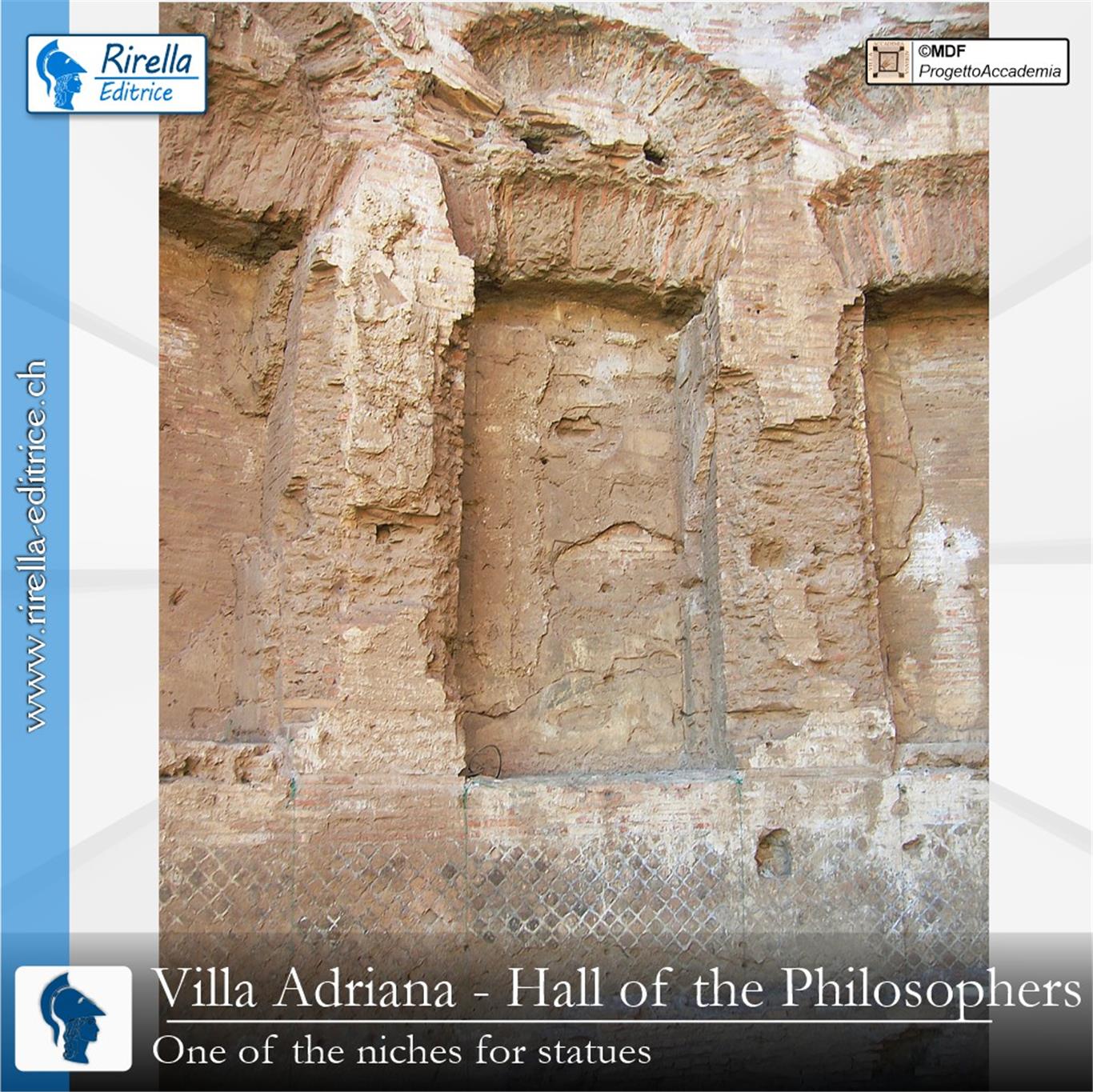✅ The name Hall of the Philosophers is invented: maybe in the niches there were the statues of the Seven Sages of Greece. According to other scholars it was a Library, and the manuscripts were kept in the niches, not a very practical arrangement.