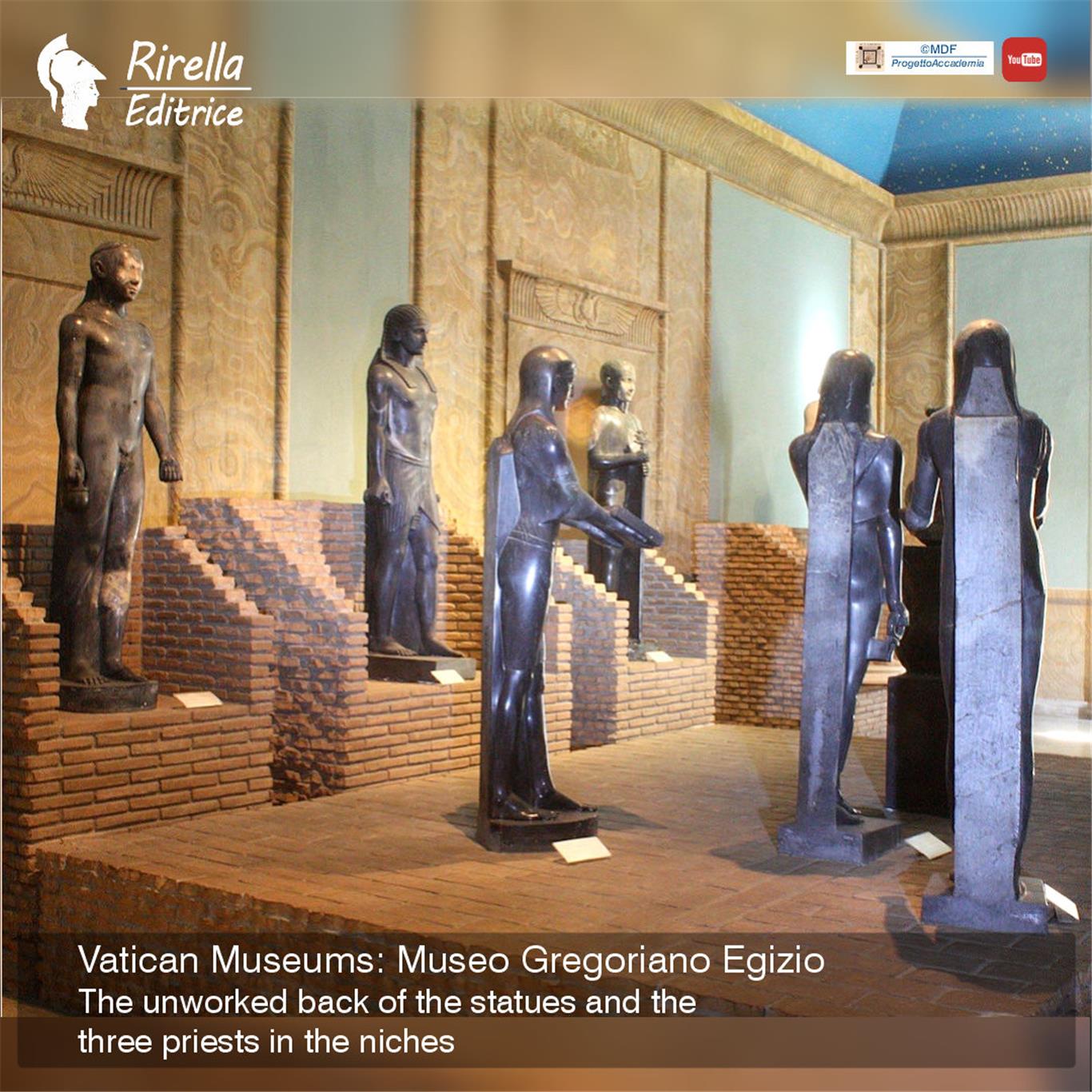 In the side niches of the reconstruction, which reproduces the central part of the Canopus, are other sculptures, including a priest of Isis holding a baton and another holding a small vase containing sacred water.